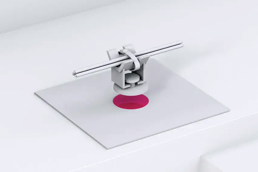 The ONSERT process from Böllhoff combines bonding and mechanical fastening in one technology. Transparent plastic elements are applied directly to lightweight materials using the light-curing adhesive—without drilling or local material weakening. This protects composite materials and allows for great freedom of design. After curing, functional elements such as cable holders can be easily clipped on. With curing times of around eight seconds and the possibility of automated processing, the solution is ideally suited for series production.