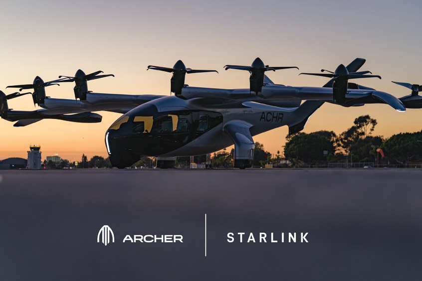Archer Aviation Inc. today announced it will work with Starlink to bring stable, reliable and high-speed connectivity to its air taxis, marking Starlink’s entry into the emerging air mobility category and an industry-first collaboration.