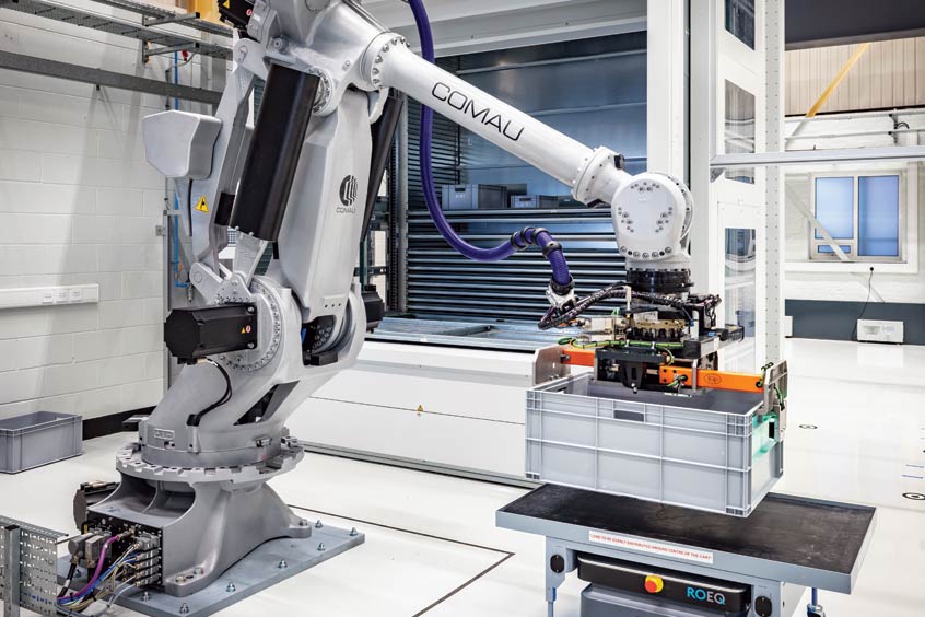 The factory also demonstrates a new approach to the way humans and machines can operate together. Cobotic (co-operative robotic) and flexible robotic technologies remove the need for heavy, fixed, long-lead tooling and can quickly switch from the manufacture of one item or platform to another. Intelligent machines and off-the-shelf robotic technology from the automotive industry have been modified to operate at the precise tolerances required for military aircraft, which are less than a third the width of a human hair on some of our programmes.