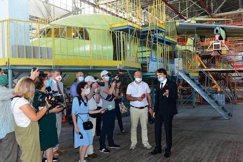 On August 21, the aircraft was presented to the Ukrainian media by Oleksandr Los, president of Antonov Company. He reported the results achieved on the AN-178 construction and expressed thanks to Antonov's team for such high-skilled and selfless works. He accompanied participants of the press conference in the assembly shop.