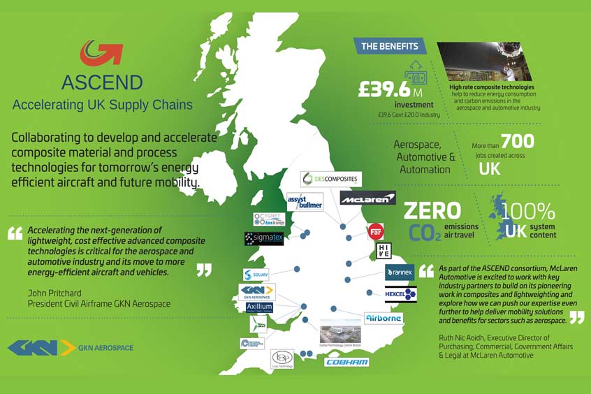 GKN Aerospace is leading a new UK industry consortium called ASCEND (Aerospace and Automotive Supply Chain Enabled Development) to develop and accelerate composite material and process technologies for the next generation of energy efficient aircraft and future mobility.