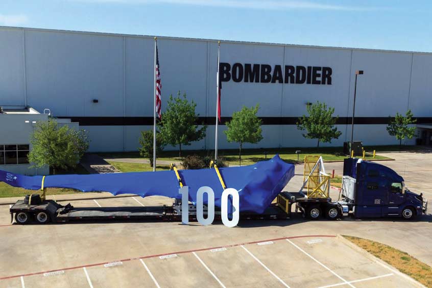 Bombardier has completed the 100th wing for its Global 7500 business jet, a significant milestone for the industry-leading aircraft and for the company's facility in Red Oak, Texas, where the advanced wing is manufactured.
