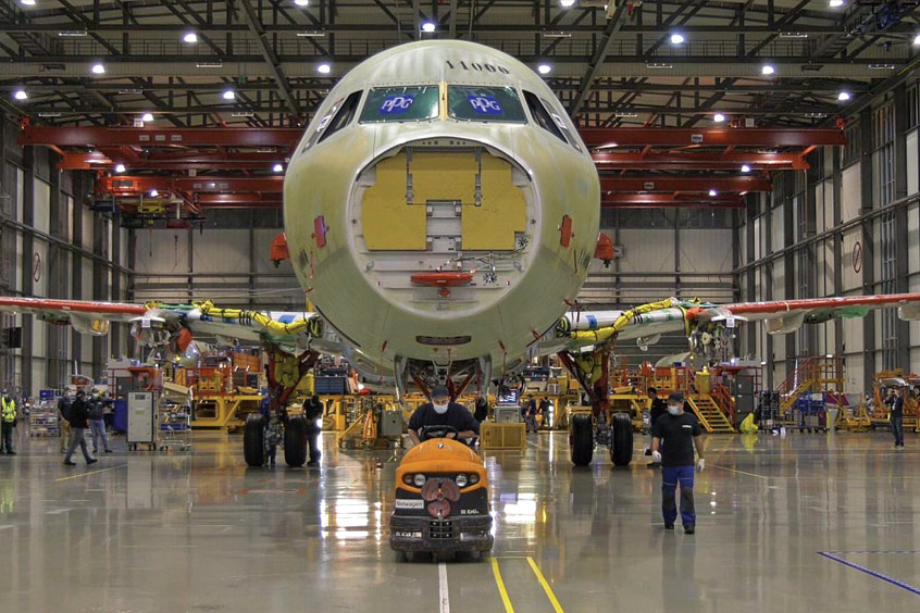The structural completion of MSN11000 in the final assembly line (FAL) in Hamburg follows the recent assembly and equipping of the major component assemblies (MCAs) and their subsequent delivery and introduction on schedule into the FAL in November. These MCAs notably included: the nose and forward fuselage, delivered from Saint Nazaire; the centre and aft fuselage assembled in Hamburg; the wings from Broughton; the landing gears supplied by Safran, and the vertical and horizontal tailplanes from Stade and Getafe respectively.