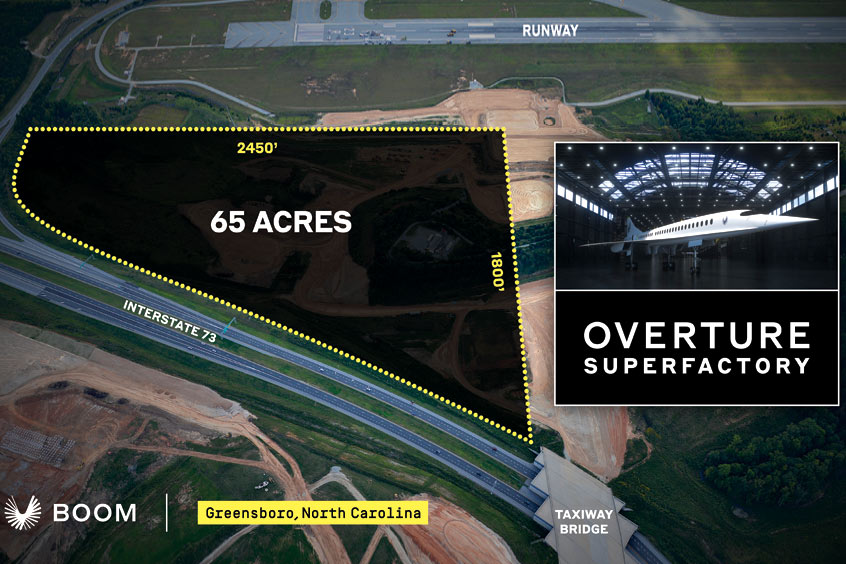 "Selecting the site for Overture manufacturing is a significant step forward in bringing sustainable supersonic air travel to passengers and airlines," says Blake Scholl, founder and ceo of Boom Supersonic. "With some of the country's best and brightest aviation talent, key suppliers, and the state of North Carolina's continued support, Boom is confident that Greensboro will emerge as the world's supersonic manufacturing hub."