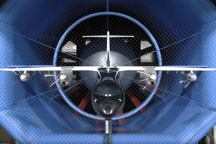 The objective of this powered-model test was to validate the overall aerodynamic integration of a next-generation electric propulsion system that is being developed with our project partners. A nine-week campaign evaluated various combinations of propulsive power, stability, control and performance parameters over the expected flight envelope. The outcome of this test confirms prior analysis conducted using state-of-the-art Computational Fluid Dynamics (CFD) and will allow Deutsche Aircraft to refine an engineering flight simulator.