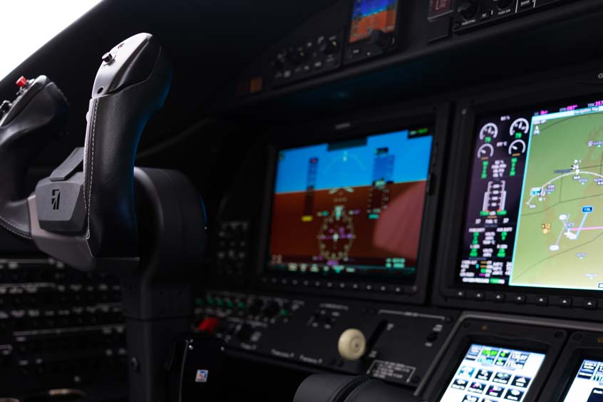 The aircraft offers a proven and trusted avionics system with the latest Garmin G3000 software and hardware, including: Garmin Autothrottles to reduce pilot workload and provide flight-envelope protection; optional Enhanced Vision System (EVS) to provide improved clarity and optimized situational awareness; intuitive touch screen interface; and GDL60 for aircraft connectivity, including remote transmission of flight plans, automatic database updates, as well as wireless transmission of aircraft diagnostic data.