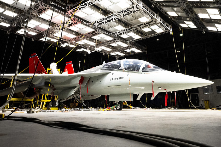 Escape System Test: Boeing and the Air Force conducted a dynamic sled test in February at Holloman Air Force Base in New Mexico. The test focused on design enhancements in the Collins Aerospace, an RTX business, ACES 5 ejection seat and Pacific Scientific EMC's canopy fracturing system to reduce the risk of injury. During the test, the team implemented variable timing to slow down the ejection seat, using the drogue chute and investigated canopy fracturing system patterns. The team is now preparing to move forward with the next round of development testing.