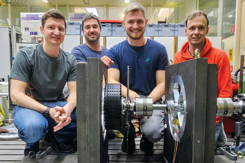 The equipment under test comprises of two electric engines based on aviation qualified hardware and their respective mechanical coupling as well as the single output shaft, while the propeller is simulated by a laboratory load machine. The setup is at reduced scale regarding the final aircraft level performance rating.