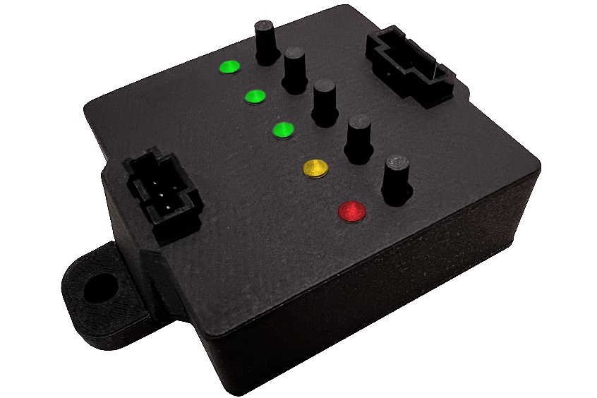 For calibration, five buttons are set at 0, quarter, half, three-quarter, and full levels. The input into the FLC may be any standard 0 to 5 volt fuel probe or any standard resistive sender. The output of the FLC is always a standard 0 to 5 volt value, compatible with almost all fuel gauges currently on the market. Furthermore, the FLC includes a five-point LED fuel level gauge, which illuminates red when the tank remains below 25% of fuel.