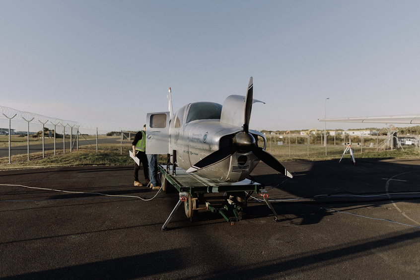 The event was the first of its kind in the Southern Hemisphere, marking the first hydrogen-electric propeller spin test on a registered aircraft at an international airport.