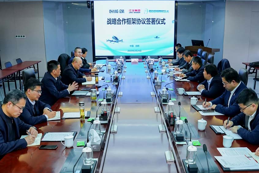 Key officials at the signing ceremony included Hefei Vice Mayor Fei Yuan, JAC Motors chairman Xingchu Xiang and EHang CEO Huazhi Hu. The agreement covers R&D, manufacturing and sales, aligning Hefei’s new energy vehicle sector with low-altitude aviation.