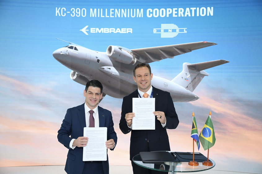 Embraer and Denel have signed a Memorandum of Understanding to explore cooperation on the KC-390 Millennium aircraft. The agreement was formalised at the LAAD Defence and Security exhibition in Brazil by Denel’s group executive CEO Aerospace Chris Boshoff and Embraer Defense & Security’s vice president of contracts Fabio Caparica.