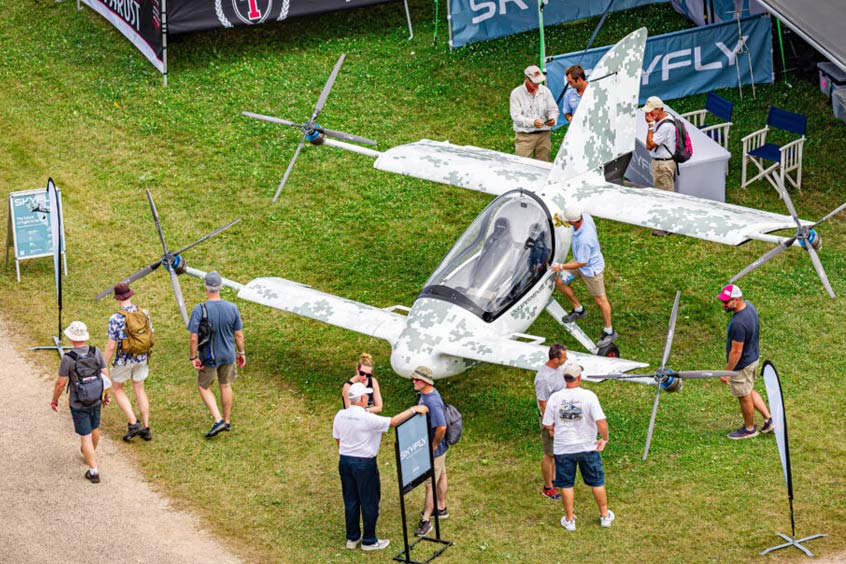 Skyfly’s Axe VCA (Vertically-Capable Aircraft) made its first US appearance in July at the EAA’s AirVenture show in Oshkosh, Wisconsin. The event is the world’s largest airshow, with over 10,000 aircraft and a record 704,000 attendees this year. Skyfly had its Axe aircraft on static display and team members on hand to speak with media, visitors and customers.