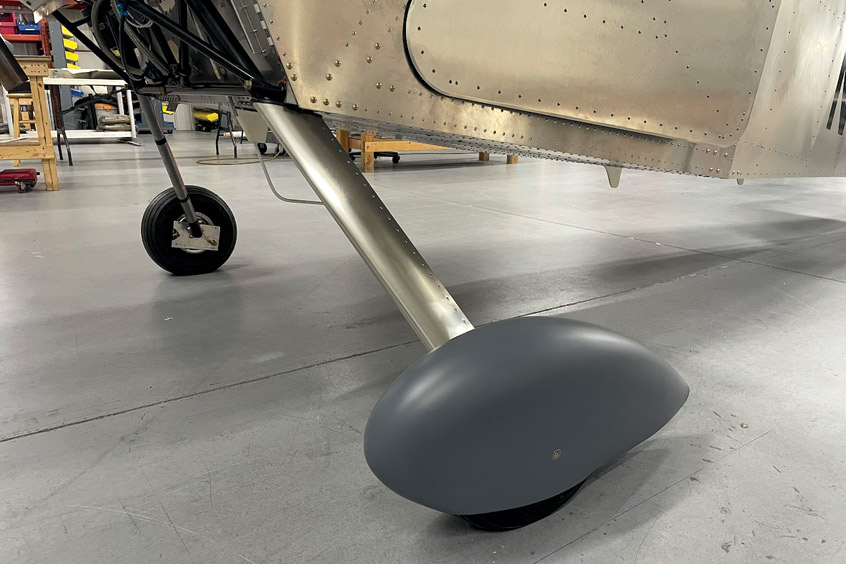 Snow has delayed further test flights, but the prototype aircraft has been upgraded with 30-gallon wing tanks, a cabin heat box, a thicker windshield, corrected landing gear legs, and ball bearing aileron bellcranks for smoother control response. Aerobatic door release systems have also been installed.