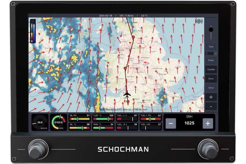 Single screen AI-assisted glass cockpit for general aviation, offering voice command control and an AI co-pilot that can transcribe ATC transmissions.
