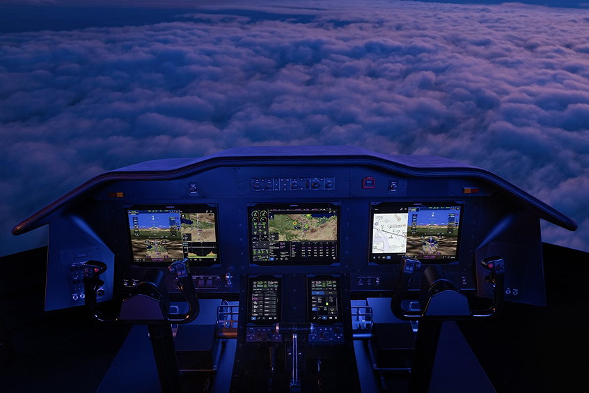 Integrated Flight Deck, typically comprising GTC 570 touchscreen controller and GDU 1400 displays. Features 14.1 inch displays which provide room for two separate vertical pages to be viewed side-by-side on the MFD – along with the aircraft’s EIS strip for engine and fuel data. Includes G3000H EFIS tailored for helicopter operators with enhanced VFR/IFR capability, and G3000 PRIME adding advanced automation and intuitive functionality for pilots.